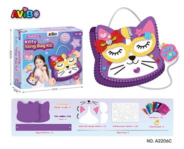 产品名称:2合1儿童手工毛毡包小猫编织包包diy自制材料包毛绒斜挎包+3D斑彩贴(镭射贴)