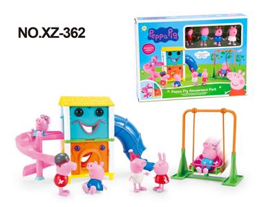 粉红小猪游乐园+荡秋千场景(配四只角色搪塑公仔)