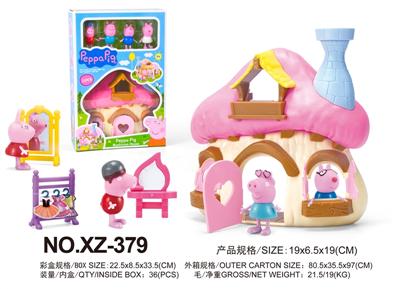 粉红小猪蘑菇屋场景套装(配4只角色小猪)