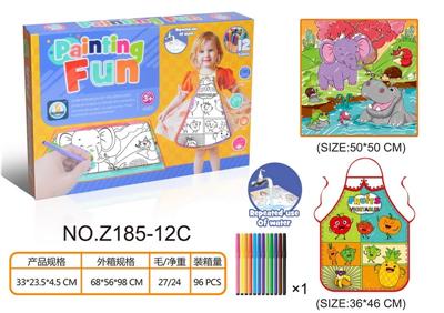 2PCS 水果蔬菜涂鸦围裙和动物世界儿童涂鸦布
