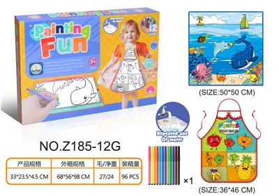 2PCS 水果蔬菜涂鸦围裙和海洋世界儿童涂鸦布