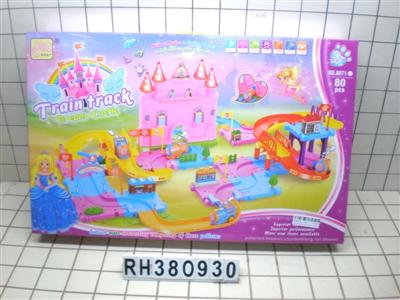 公仔小城堡电动火车轨道积木感应灯光音乐