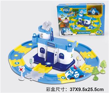 POLI主题轨道停车场警察局场景(配一只POLI角色惯性车)