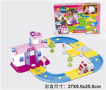 POLI主题轨道停车场救护站场景(配一只POLI角色惯性车)