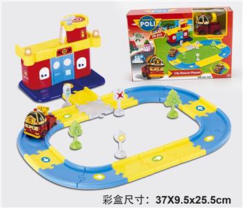 POLI主题轨道停车场消防局场景(配一只POLI角色惯性车)