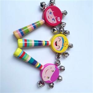 木制笑脸卡通手摇铃
