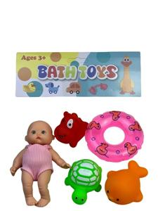 5寸搪胶娃娃配海洋生物和泳圈
