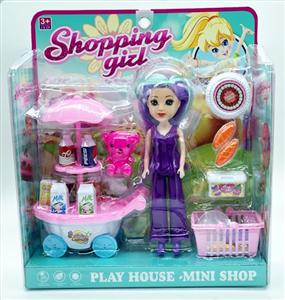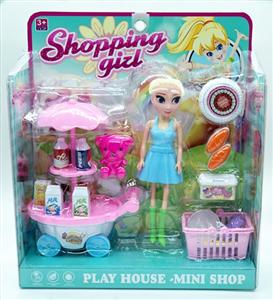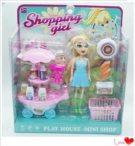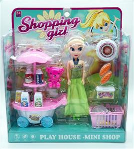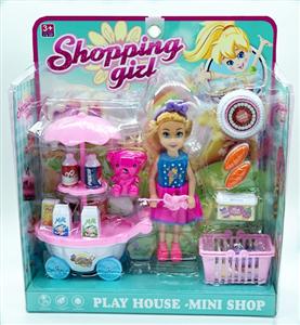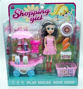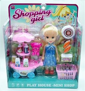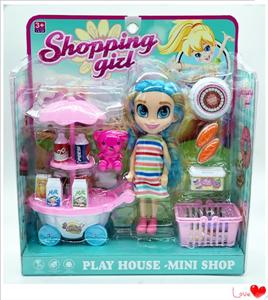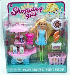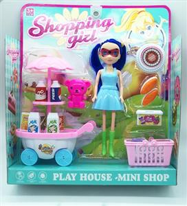 单只7寸大眼妹配饮料车,食物套,篮子,小熊,袋子