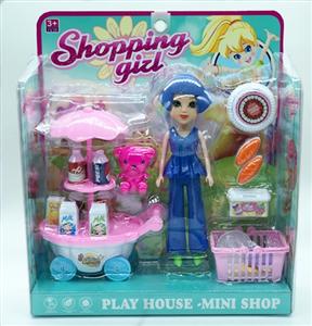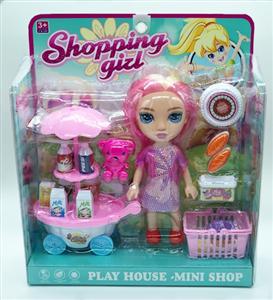 单只7寸大头妹配饮料车,食物套,篮子,小熊,袋子
