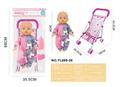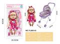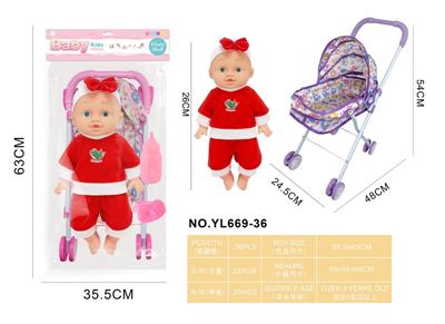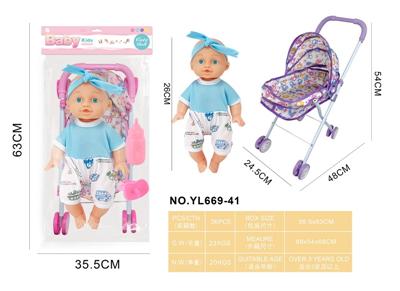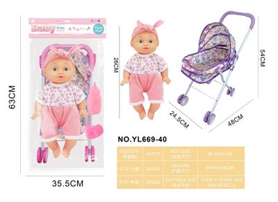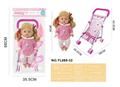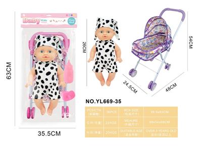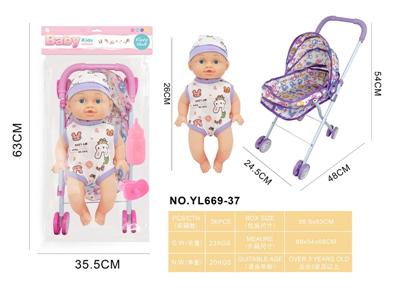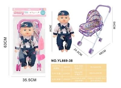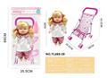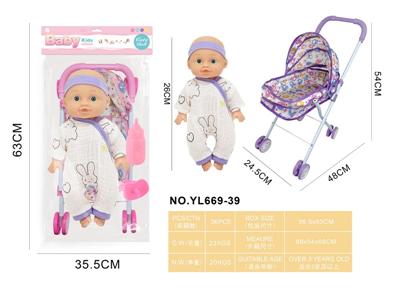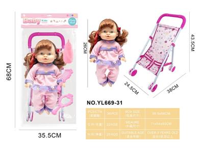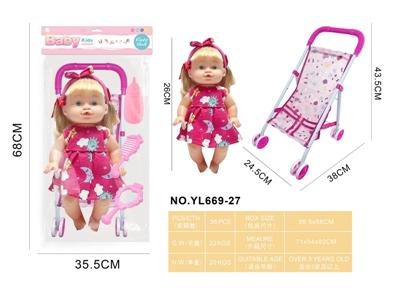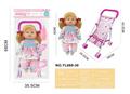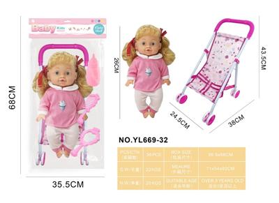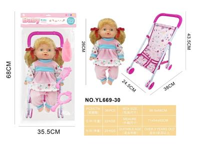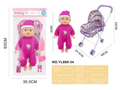 26CM制手推车遮阳布 配:娃娃吹瓶身体,喝水尿尿带4声IC,配件:奶瓶+奶嘴+镜子+梳子(包3粒AG13)