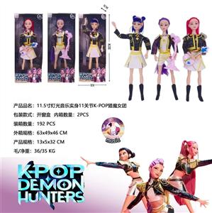 K-POP 猎魔女团真人版11.5寸12关节实身带七彩灯光主题曲Rumi鲁米打歌芭比带金貂卡片一张带摇滚吉他