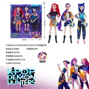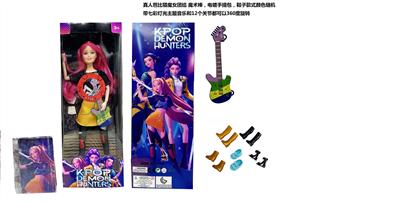 K-POP 猎魔女团真人版11.5寸12关节实身带七彩灯光主题曲鲁米佐伊米cospiay朋克双人芭比 带吉他主题套装,金貂卡片一张