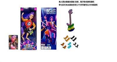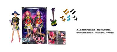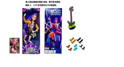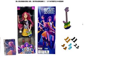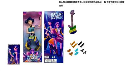 K-POP 猎魔女团真人版11.5寸12关节实身带七彩灯光主题曲鲁米佐伊米cospiay朋克芭比带吉他,金貂卡片一张