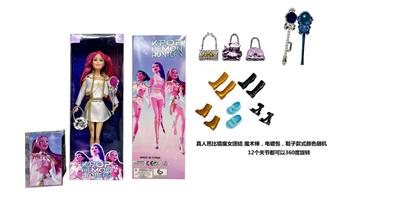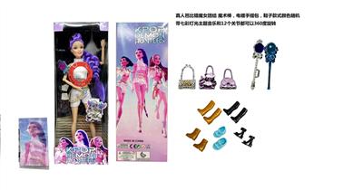 K-POP 猎魔女团真人版11.5寸12关节实身带七彩灯光主题曲鲁米佐伊米cospiay朋克芭比带吉他主题套装,金貂卡片一张