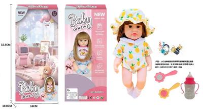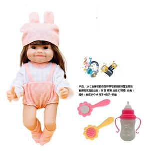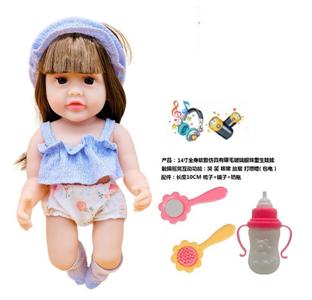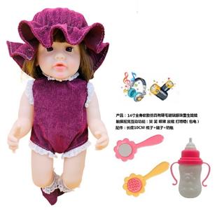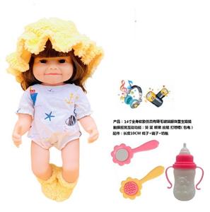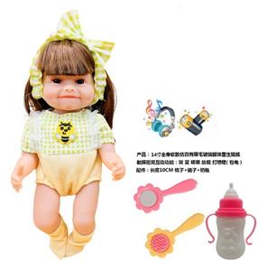 14寸全身软胶仿真有睫毛玻璃眼珠重生娃娃带梳子镜子奶瓶