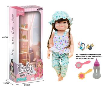 24寸全身软胶仿真有睫毛玻璃眼珠重生娃娃带梳子镜子奶瓶