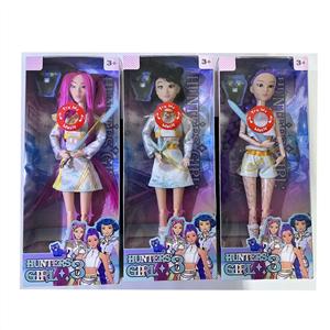 K-POP猎魔系列 12寸12关节实身身带七彩灯光主题曲真玻璃眼珠惊喜猎魔女团娃娃带七彩灯光主题曲3款混装