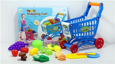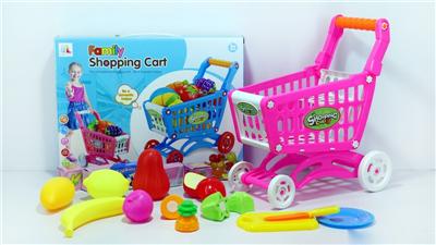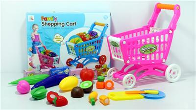 购物推车配水果+5个小盒子 18PCS(两色混装)