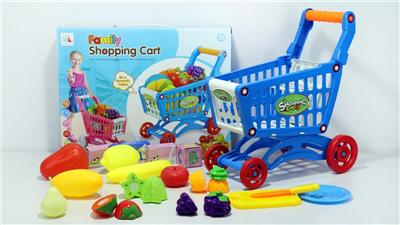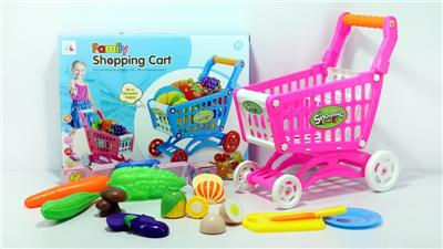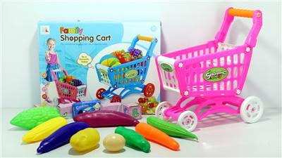 购物推车配蔬菜+5个小盒子 14PCS(两色混装)