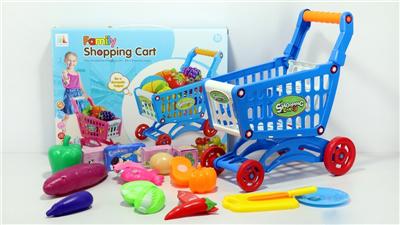 购物推车配蔬菜+5个小盒子 12PCS(两色混装)