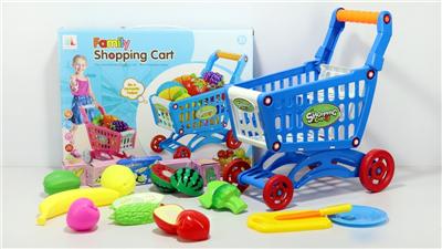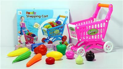 购物推车配水果+5个小盒子 11PCS(两色混装)