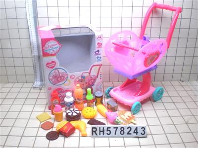 购物推车配蔬菜+5个小盒子 16PCS(两色混装)