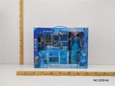 厨房系列+配套+芭比 冰雪奇缘 蓝色 带电 灯光音乐(三灯)
