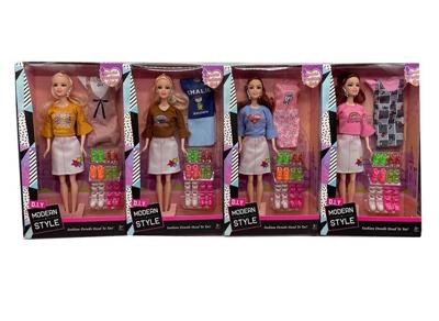 新品11.5寸实身活手时装短裙芭比带挂衣、耳环、鞋子吸塑配件 4款混装