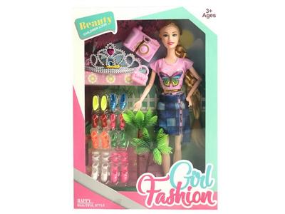 新品11.5寸实身11关节时装短裙芭比带皇冠、相机、手提包、鞋子吸塑配件