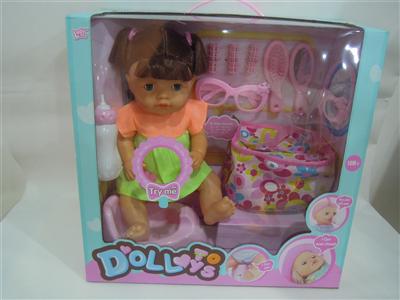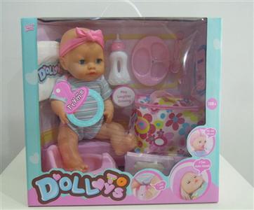 12"12声喝水尿尿女娃+餐椅+奶瓶