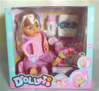16"喝水尿尿功能发12声女娃+手提袋+尿裤等
