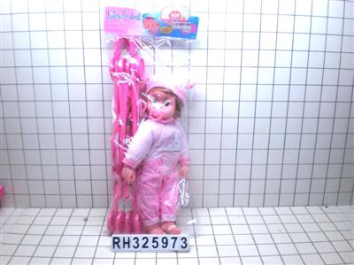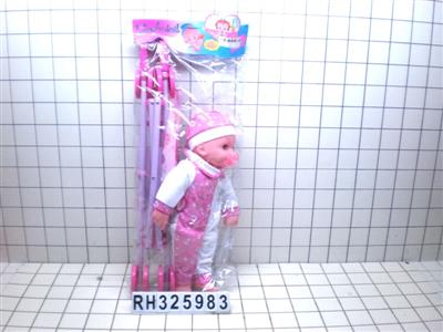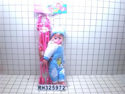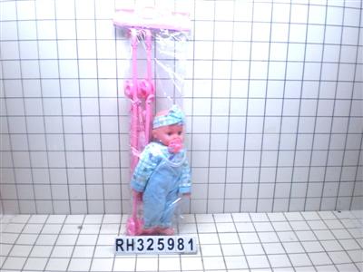18寸棉身哭声牛娃娃配推车