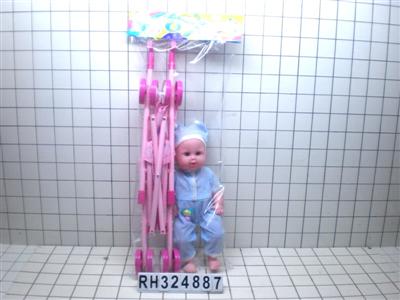 铁制婴儿推车配活眼空心男娃带IC