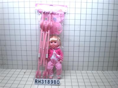 四声IC公仔配婴儿铁制推拉车,浴缸