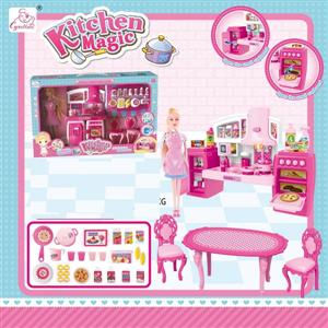 可分体橱柜+桌椅+面包配件+粉围裙芭比 芭比色 灯光声音