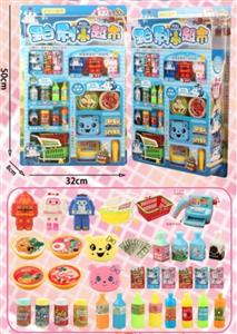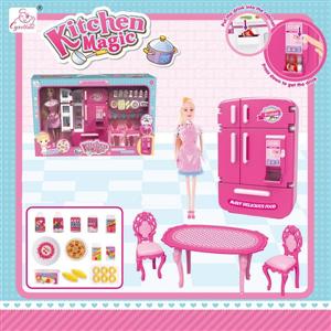 多门冰箱售货机+桌椅+食物配件+粉围裙芭比 芭比色 灯光声音 两款混转
