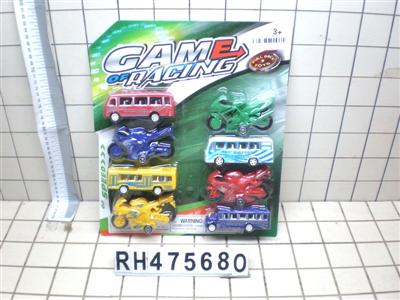 实色回力摩托车+巴士车 8PCS(8款4色)