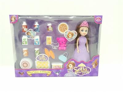 单只7寸苏菲亚公主配饮料,蛋糕,面包,小熊,迷你袋