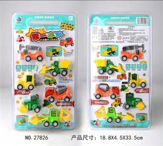 6只回力工程车+路标人