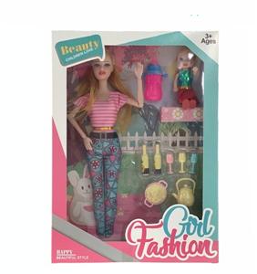 11寸9关节大脚芭比娃娃加三寸娃娃喝奶瓶等野外配餐