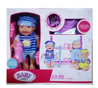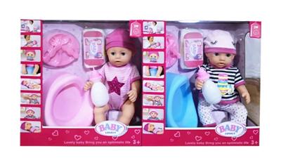 新款16寸喝水拉尿搪胶娃带配件,6声IC