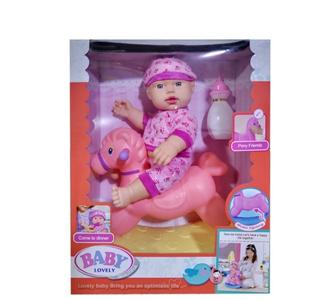 新款14寸搪胶娃喝水撒尿配灯光音乐摇马,奶瓶