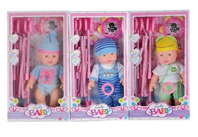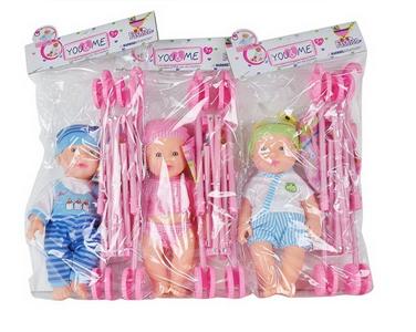 3款12寸搪胶表情娃配推车