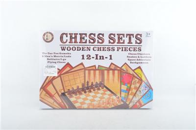 (12合1)木制游戏棋套