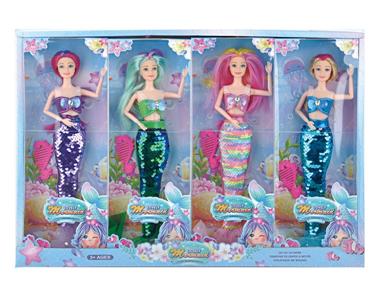 11寸9关节实身美人鱼芭比娃娃4人展示盒