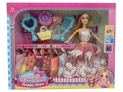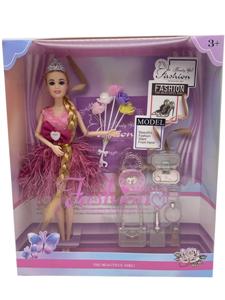 11寸12关节实身时装卷发芭比娃娃+宠物狗狗窝包包配件