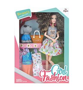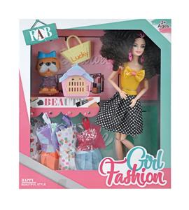 11寸12关节实身时装卷发芭比娃娃+宠物狗配件