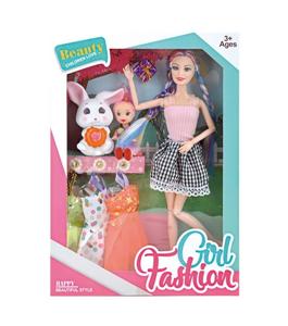 11寸12关节实身时装卷发芭比娃娃+宠物兔3寸仔配件