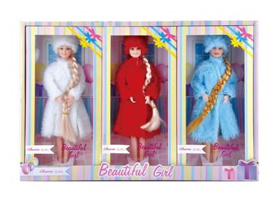 11寸实身9关节冬天芭比娃娃3人展示盒(3只装)