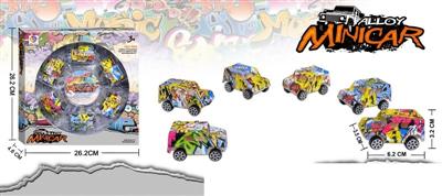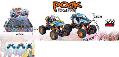 1:32涂鸦合金前后回力带弹簧避震攀爬车12PCS(带灯光声音)